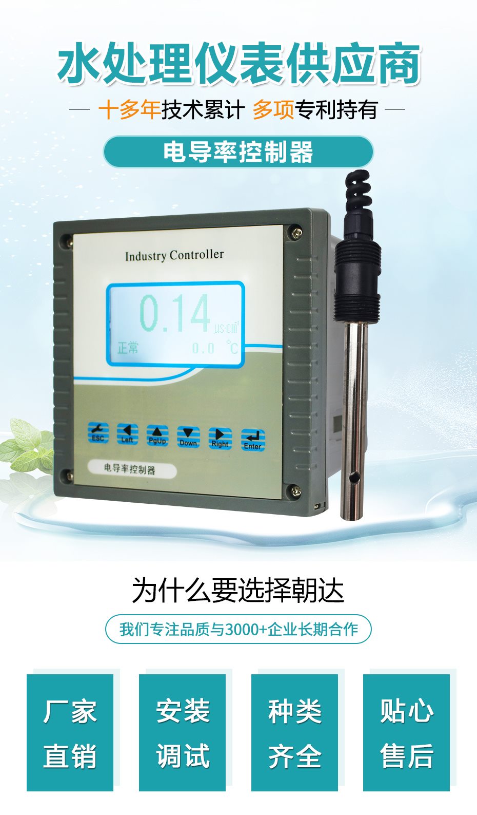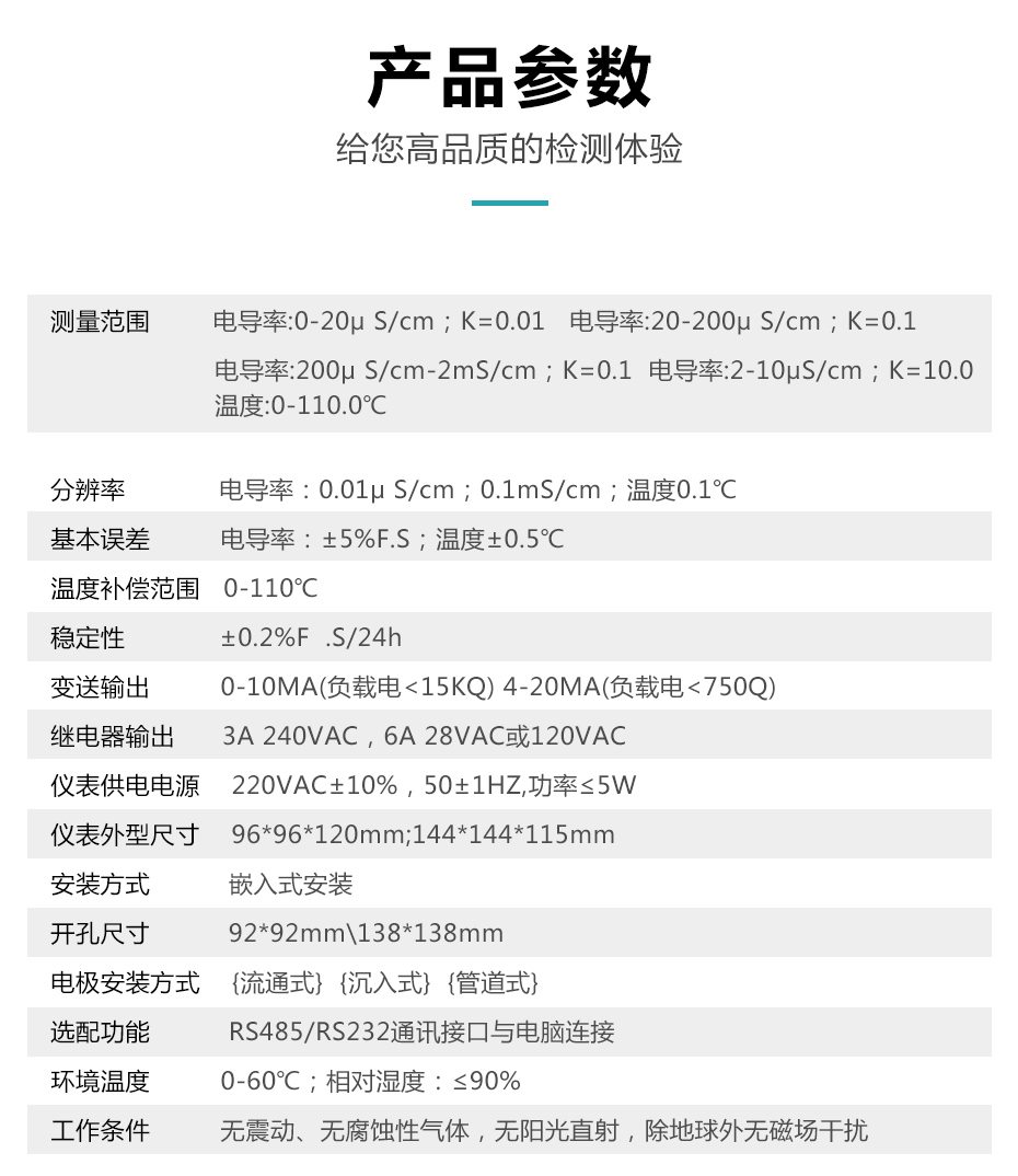 在線電導率儀是帶微處理器的水質在線監測儀,該儀表配置不同常數的電*廣泛用于電廠、石油化工、冶金電子、礦業、紙業、半導體、醫藥、食品飲料、環保水處理、新型農業種植等各個行業;適用于軟化水、原水、蒸汽冷凝水、海水蒸餾以及去離子水等。